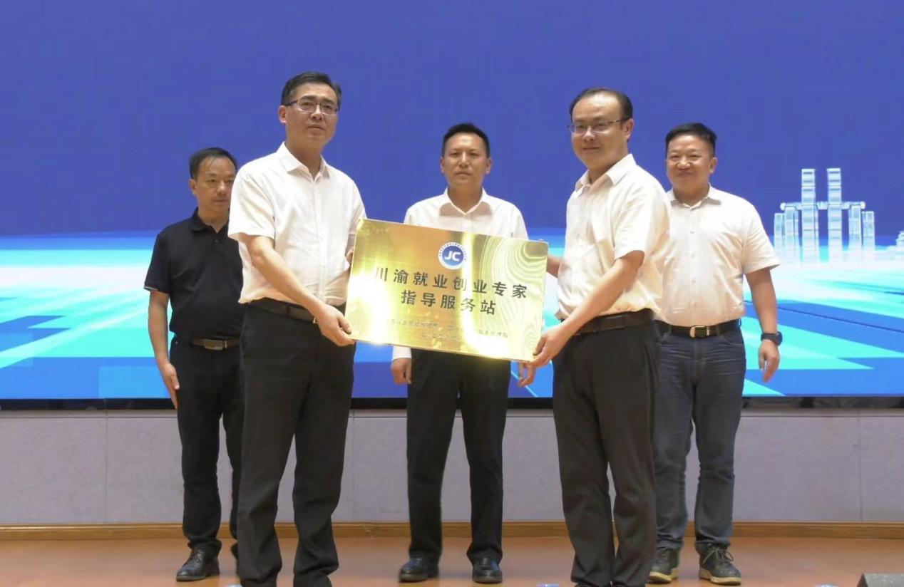 重慶市人力社保局為“川渝就業(yè)創(chuàng)業(yè)專家指導(dǎo)服務(wù)站(合川站)”授牌。主辦方供圖