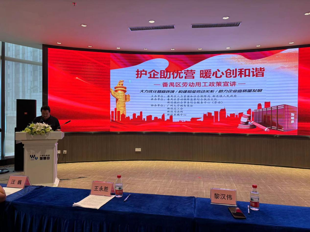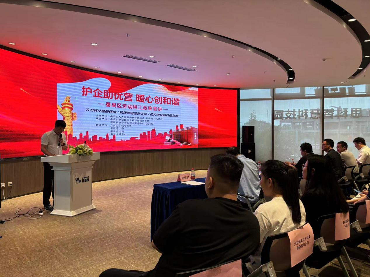 大力優(yōu)化營商環(huán)境,構(gòu)建和諧勞動關(guān)系,助力企業(yè)高質(zhì)量發(fā)展,2024年4月29日下午,由廣東省廣州市番禺區(qū)人力資源和社會保障局、新造鎮(zhèn)人民政府、番禺區(qū)勞動保障監(jiān)察綜合執(zhí)法大隊(duì)、新造鎮(zhèn)社會事務(wù)綜合服務(wù)中心聯(lián)合舉辦的番禺區(qū)勞動用工政策宣講會在廣州大學(xué)城智慧谷多功能會議廳熱烈開講,番禺區(qū)60多家企業(yè)積極到場參加宣講會。