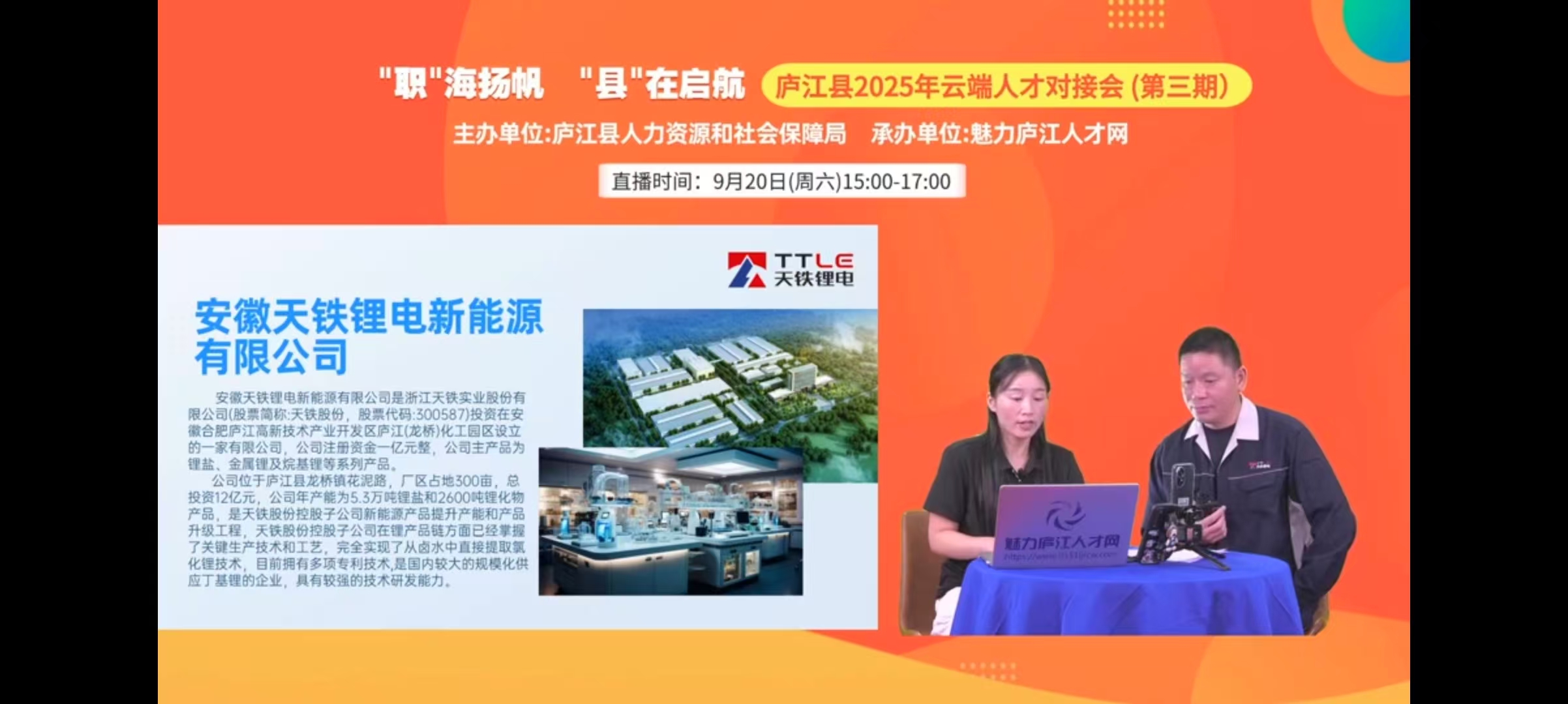 “簡歷怎么投?”“機(jī)電一體化專業(yè)有崗位嗎?”“管培生具體崗位介紹一下。”“非專業(yè)背景能否應(yīng)聘技術(shù)崗?”活動(dòng)中,幾家企業(yè)人事輪番上陣,以播放企業(yè)簡介、講解崗位需求及介紹薪資待遇等方式與求職者“隔屏”互動(dòng),及時(shí)回應(yīng)相關(guān)咨詢。一時(shí)間,直播間的氛圍 “熱”了起來。“這種招聘方式挺好的,覆蓋面廣,能夠招到更多人才。”安徽天鐵鋰電池新能源有限公司相關(guān)負(fù)責(zé)人說。
