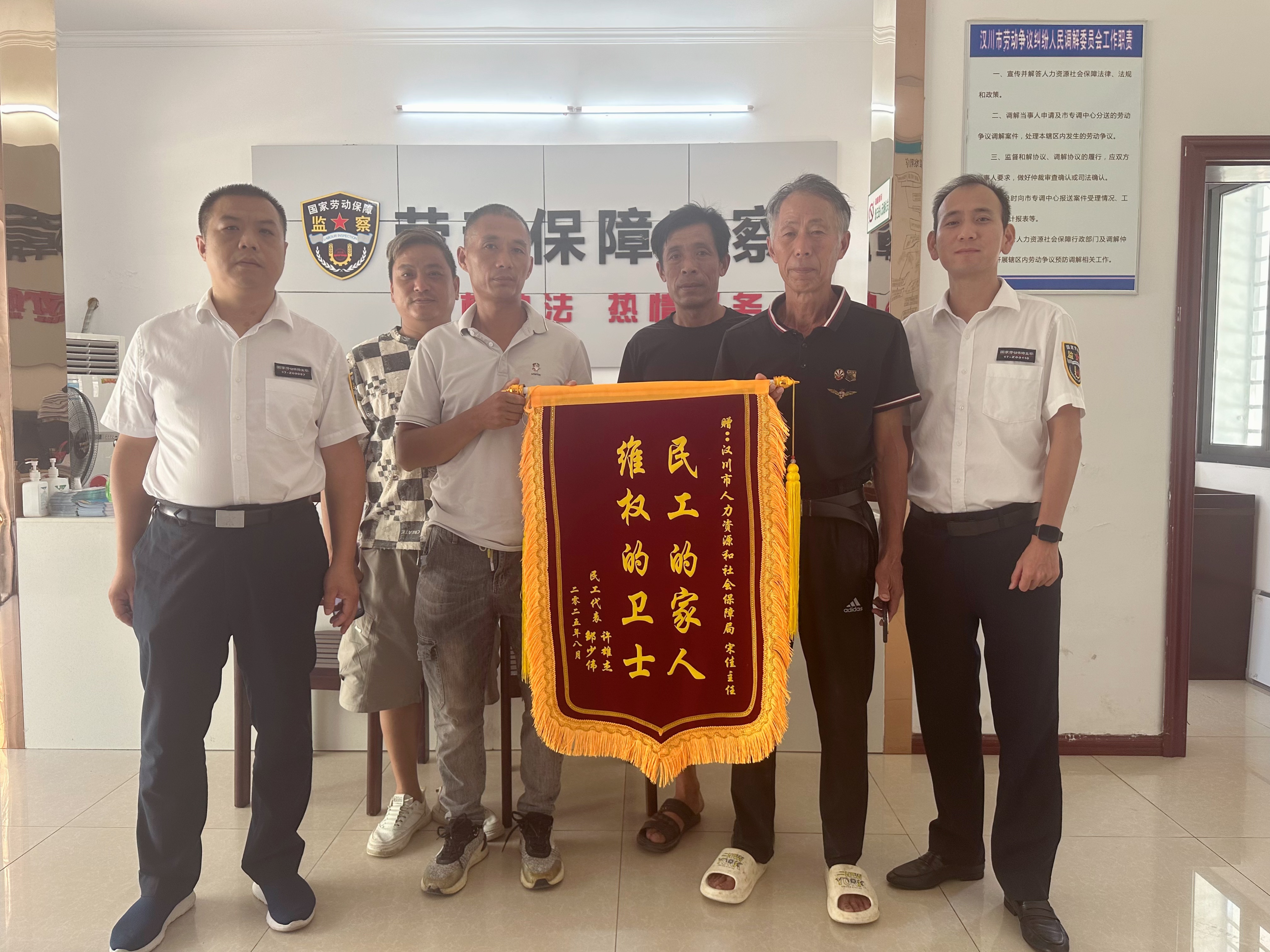 “感謝監(jiān)察員!要不是有你們幫忙,真不知道什么時候才能拿回被拖欠的工資……”近日,四名農民工代表在領到工資后,將一面寫有“民工的家人,維權的衛(wèi)士”的錦旗,送到了湖北省漢川市人社局勞動保障監(jiān)察員的手中,感謝他們成功追回被拖欠的28萬元工資。