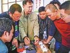 河北省饒陽(yáng)縣就業(yè)服務(wù)局依托職業(yè)培訓(xùn)學(xué)校,聘請(qǐng)專業(yè)教師面向農(nóng)民工分期開設(shè)電焊、美容、育嬰等免費(fèi)技能培訓(xùn)班,讓農(nóng)民工掌握一技之長(zhǎng),成長(zhǎng)為技術(shù)工人。據(jù)了解,該縣已開辦免費(fèi)技能培訓(xùn)班76期,共培訓(xùn)3300余人。圖為近日,饒陽(yáng)縣職業(yè)培訓(xùn)學(xué)校老師為農(nóng)民工學(xué)員講解電動(dòng)機(jī)操作技術(shù)。(李曉果 攝) ?