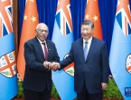 8月20日下午,國家主席習(xí)近平在北京人民大會堂會見來華正式訪問的斐濟總理蘭布卡。新華社記者 黃敬文 攝 新華社北京8月20日電(記者溫馨)8月20日下午,國家主席習(xí)近平在北京人民大會堂會見來華正式訪問的斐濟總理蘭布卡。 習(xí)近平祝賀斐濟男子七人制橄欖球隊在巴黎奧運會上榮獲銀牌。習(xí)近平指出,斐濟...