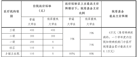 參加我市城鎮(zhèn)居民基本醫(yī)療保險的大學(xué)生,享受城鎮(zhèn)居民(學(xué)生)基本醫(yī)療保險住院及特殊疾病門診醫(yī)療待遇。