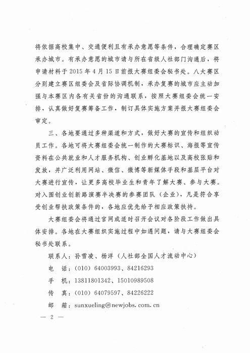 一、各地要高度重視本次大賽,并將其作為落實(shí)黨中央、國務(wù)院關(guān)于鼓勵(lì)創(chuàng)業(yè)創(chuàng)新總體部署和深入實(shí)施“大學(xué)生創(chuàng)業(yè)引領(lǐng)計(jì)劃”的具體活動(dòng),按照大賽組委會(huì)和我部就業(yè)促進(jìn)司、全國人才流動(dòng)中心的具體安排,做好大賽相關(guān)組織實(shí)施工作。各省可設(shè)立省級(jí)大賽組委會(huì)并確定專門工作機(jī)構(gòu),負(fù)責(zé)大賽的宣傳動(dòng)員、組織報(bào)名、初賽的組織實(shí)施以及后續(xù)賽事的聯(lián)系協(xié)調(diào)等工作,相關(guān)工作經(jīng)費(fèi)按規(guī)定列支。各省工作機(jī)構(gòu)名單及聯(lián)系方式,請(qǐng)于2015年3月10日前報(bào)大賽組委會(huì)秘書處。