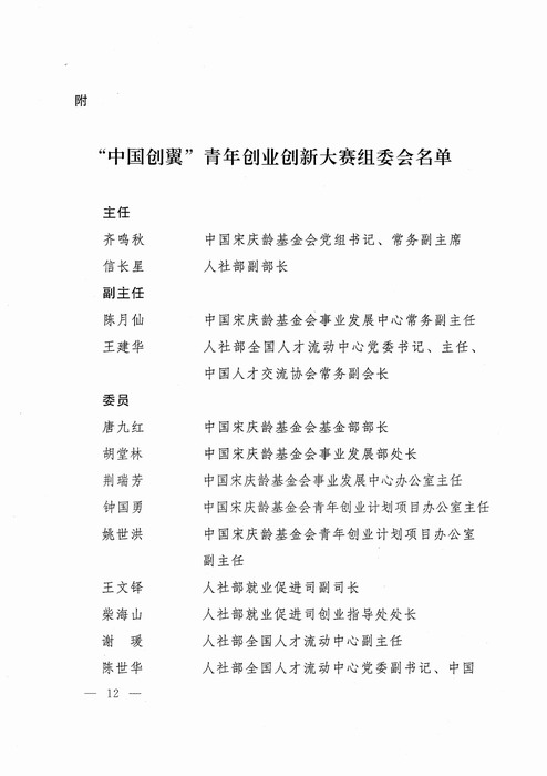 為貫徹落實(shí)黨中央、國務(wù)院關(guān)于鼓勵(lì)創(chuàng)業(yè)創(chuàng)新的工作部署,形成“大眾創(chuàng)業(yè)、萬眾創(chuàng)新”的良好環(huán)境,2015年,我部將與中國宋慶齡基金會(huì)聯(lián)合舉辦“中國創(chuàng)翼”青年創(chuàng)業(yè)創(chuàng)新大賽。現(xiàn)將大賽總體方案印發(fā)你們,并就有關(guān)事項(xiàng)通知如下: