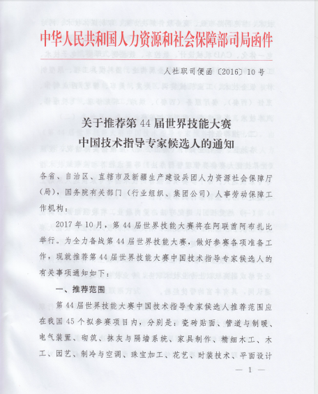 點(diǎn)擊下載附件:關(guān)于推薦第44屆世界技能大賽中國(guó)技術(shù)指導(dǎo)專家候選人的通知