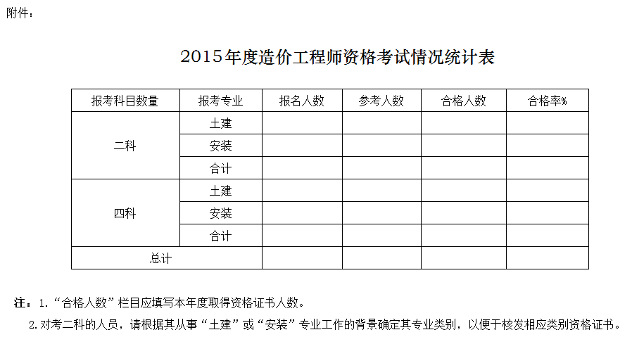 附件:2015年度造價工程師資格考試情況統(tǒng)計表