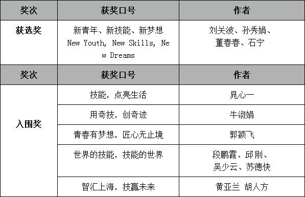 本次獲獎(jiǎng)口號(hào),將在國家人社部官網(wǎng)、上海市人社局官網(wǎng)、世界技能大賽中國組委會(huì)官網(wǎng)、解放日報(bào)·上海觀察公示,歡迎社會(huì)各界監(jiān)督、評議。