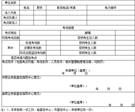 3.全國(guó)(省)統(tǒng)一鑒定考點(diǎn)申報(bào)表