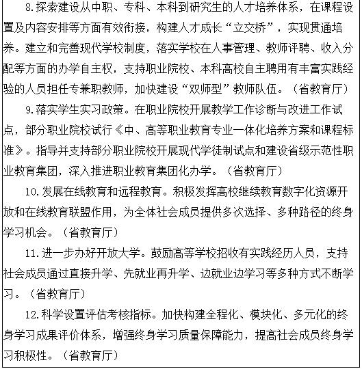 提升人才培養(yǎng)質量。加快教育供給側結構性改革,完善終身學習服務體系,加強終身教育制度建設,統(tǒng)籌應用型、復合型等各類人才培養(yǎng)。依托校企聯(lián)盟,充分發(fā)揮教育鏈和產業(yè)鏈上下溝通、縱橫結合的優(yōu)勢,校企協(xié)同優(yōu)化人才培養(yǎng)模式。進一步改善職業(yè)院校基本辦學條件,建設一批高水平的職業(yè)院校和骨干專業(yè),加快培育大批具有專業(yè)技能與工匠精神的高素質勞動者和人才。