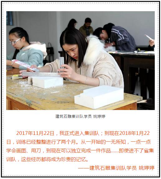 剛開始接觸石膏那會,其實(shí)感覺這項技術(shù)挺難的,我甚至對“建筑石雕”這個概念也是迷茫的。尤其是當(dāng)外國專家向我們展示選手競賽視頻時,我心理的壓力陡然倍增。經(jīng)過兩個月的訓(xùn)練,獨(dú)立完成一件完整的作品于我已并非難事,我一邊深感訝異,同時也自己暗暗下定決定:就算再難也不會輕言放棄!