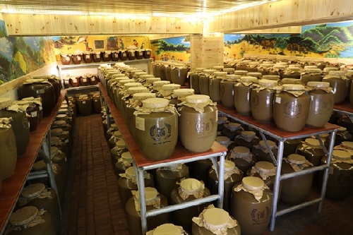 “酒香不怕巷子深”,還未走進(jìn)朱曉保的酒窖,便聞到陣陣令人陶醉的芬芳酒香。酒窖大門旁,立著一塊木牌,上面刻著“黎家山蘭酒坊”。“這壇酒是我阿婆留下來的,我把它命名為‘酒源’,多少錢都不賣,因?yàn)樗俏易龊谩杓覀髌妗脑慈薄,F(xiàn)年39歲的白沙黎族自治縣邦溪鎮(zhèn)邦溪村委會(huì)南牙村的黎家青年朱曉保在自家的酒窖里,指著一壇看起來年份久遠(yuǎn)的酒壇說到。