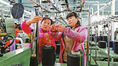 今年以來, 湖北省竹山縣聚焦產(chǎn)業(yè)扶貧, 引導(dǎo)能人大戶進村辦廠,加快脫貧攻堅步伐。 該縣成功引進江蘇正午針紡實業(yè)有限公司, 在溢水鎮(zhèn)東川村率先建成高標(biāo)準(zhǔn)襪業(yè)車間, 吸納百余名當(dāng)?shù)厝罕娂议T口就業(yè),人均月收入可達到2500元以上。圖為近日,在溢水鎮(zhèn)東川村襪業(yè)扶貧車間,該村留守婦女在扶貧車間操作機器。(朱本雙 但昊 攝影報道)
