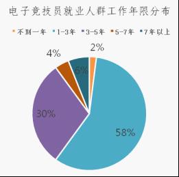對(duì)電子競(jìng)技員就業(yè)人群從業(yè)年限情況進(jìn)行調(diào)研,通過(guò)數(shù)據(jù)整理可以看出,其中有58%被調(diào)查的電競(jìng)從業(yè)人員工作年限在1-3年之間,30%的電競(jìng)從業(yè)人員工作年限是3-5年,這兩項(xiàng)占據(jù)了被調(diào)查者總數(shù)量的88%,另外有7%的從業(yè)人員工作7年以上,4%的從業(yè)人員工作5-7年,2%的從業(yè)人員工作不到1年。根據(jù)調(diào)研結(jié)果可見(jiàn),電競(jìng)行業(yè)從業(yè)者的工作年限都相對(duì)較短,這與整個(gè)電競(jìng)行業(yè)發(fā)展周期較短有必然聯(lián)系。