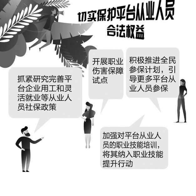 為促進靈活就業(yè)健康發(fā)展,政府有關(guān)部門需要建立規(guī)范的靈活就業(yè)標準,靈活就業(yè)人員需要有資質(zhì)認證,即類似個體工商戶營業(yè)執(zhí)照的“身份證”,以便政府部門統(tǒng)計靈活就業(yè)市場情況,規(guī)范靈活就業(yè)市場管理,促進靈活就業(yè)健康發(fā)展。同時,政府有關(guān)部門應與互聯(lián)網(wǎng)平臺共建綜合性的大數(shù)據(jù)協(xié)同治理平臺,從而形成政府、企業(yè)、行業(yè)組織、靈活就業(yè)人員共同參與的協(xié)同治理機制,這樣既能避免過度干預市場,影響新經(jīng)濟、新業(yè)態(tài)的發(fā)展,又可實現(xiàn)“互聯(lián)網(wǎng)+監(jiān)管”,避免出現(xiàn)混亂。(朱江)