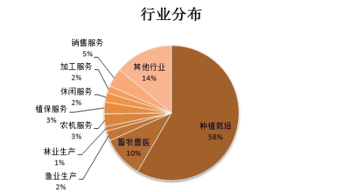 2、【行業(yè)分布】問卷提交者所在的農(nóng)業(yè)行業(yè)以種植栽培為主,基本覆蓋其他行業(yè)。從農(nóng)業(yè)行業(yè)結構來看,從事種植栽培的共1200人,占58.39%;畜牧獸醫(yī)共204人,占9.93%;漁業(yè)生產(chǎn)共48人,占2.34%;林業(yè)生產(chǎn)共23人,占1.12%;農(nóng)機服務共62人,占3.02%;植保服務共58人,占2.82%;休閑服務共46人,占2.24%;加工服務共35人,占1.7%;銷售服務共91人,占4.43%;其他行業(yè)共288人,占14.01%。