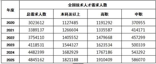 隨著國家有計劃地對傳統(tǒng)企業(yè)進行數(shù)控化、信息化和智能化改造,高端數(shù)控機床、工業(yè)機器人、增材制造等智能制造裝備將會普及應(yīng)用,需要大量操作、調(diào)試、維護、維修和改造方面的專業(yè)人才。根據(jù)調(diào)研顯示,智能制造裝備集成和應(yīng)用技術(shù)技能人才需求總數(shù)按照本科、高職和中職培養(yǎng)需求分解,具體如下表: