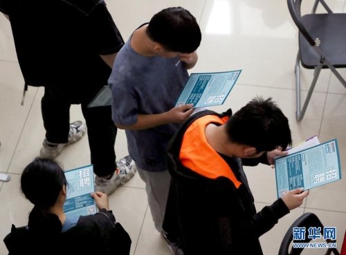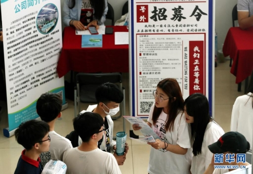5月19日,在上海第二工業(yè)大學(xué)2021屆畢業(yè)生專場招聘會上,畢業(yè)生了解招聘信息。新華社記者 劉穎 攝