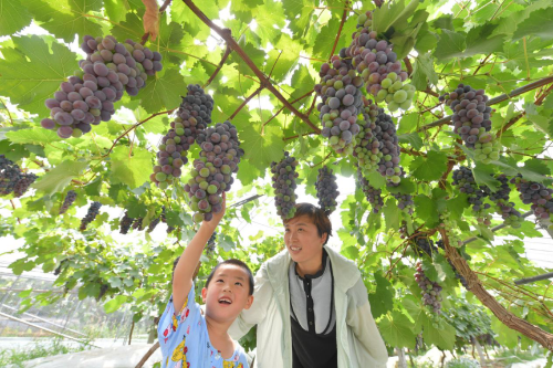 游客在安徽九禾農(nóng)業(yè)采摘園內(nèi)采摘葡萄。淮上區(qū)委宣傳部供圖
