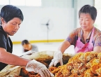 近期,陜西省西鄉(xiāng)縣在實施易地扶貧搬遷的過程中,針對集中安置社區(qū)狀況,因地制宜,加強產(chǎn)業(yè)發(fā)展和就業(yè)扶持,積極引進勞動密集型企業(yè)入駐,開辦松花蛋加工廠、雨具廠等多家社區(qū)工廠,使搬遷居民在家門口實現(xiàn)穩(wěn)定增收。圖為7月4日,西鄉(xiāng)縣高土壩社區(qū)的女工在社區(qū)內(nèi)的松花蛋加工廠工作。(張博文) ?